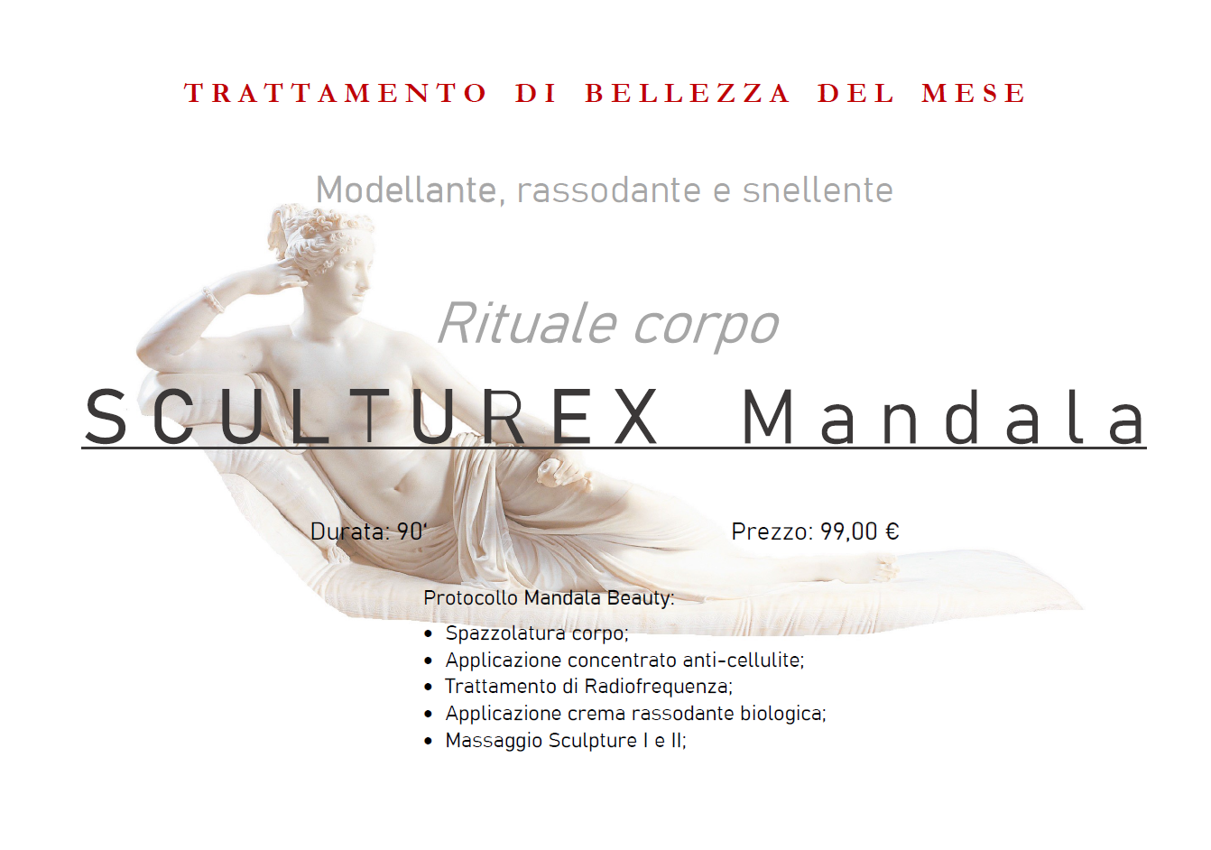 Qui sotto le locandine relative ai Rituali targati Mandala Beauty, che troverete esposte nel nostro centro estetico singolarmente a seconda del mese in cui consigliamo un rituale in particolare. Nel mese di marzo consigliamo il Rituale SCULTUREX Mandala.